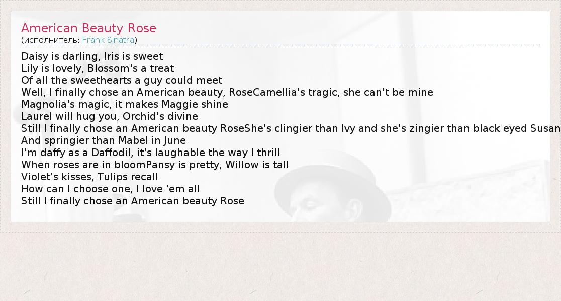 А как ты думаешь, о чем песня "American Beauty Rose" ?