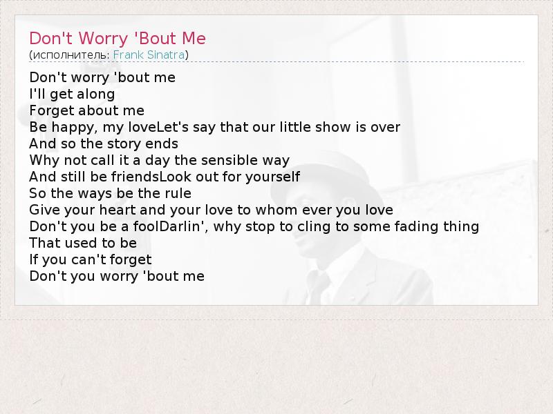 А как ты думаешь, о чем песня "Don't Worry 'Bout Me" ?