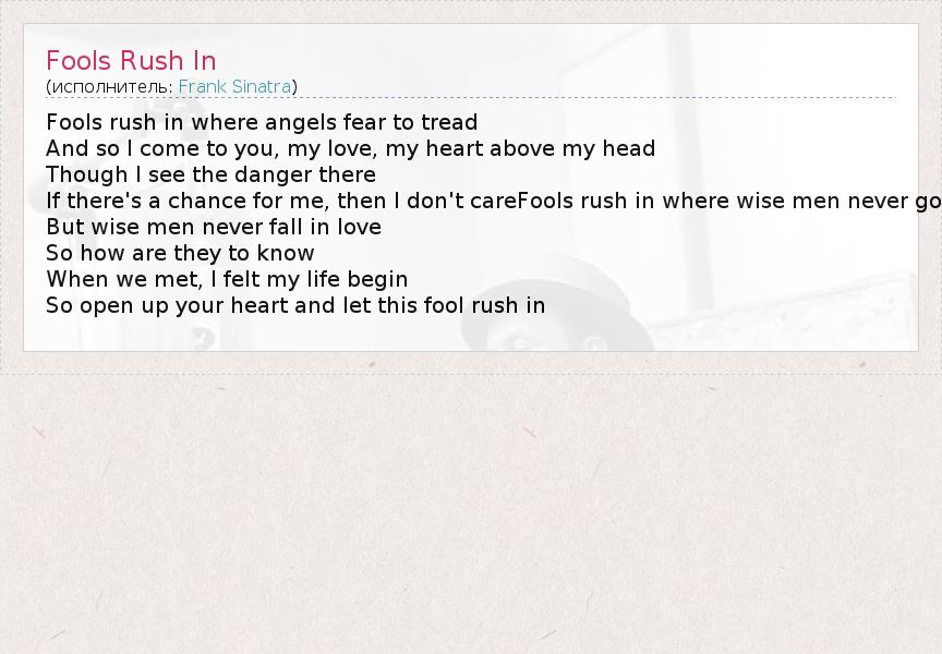 А как ты думаешь, о чем песня "Fools Rush In" ?