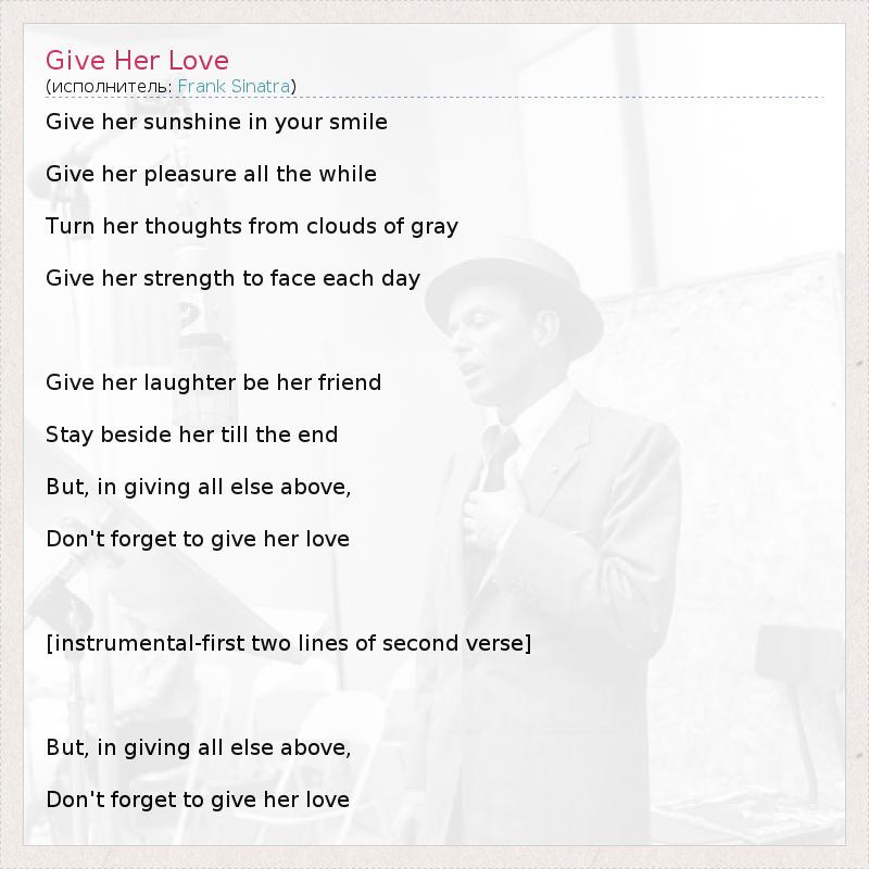 А как ты думаешь, о чем песня "Give Her Love" ?