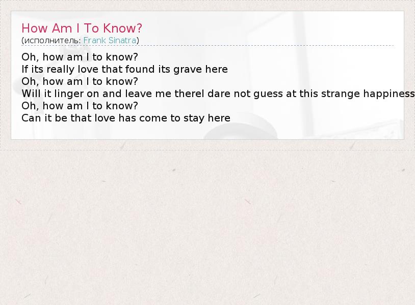 А как ты думаешь, о чем песня "How Am I To Know?" ?