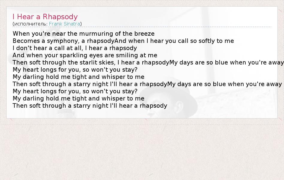 А как ты думаешь, о чем песня "I Hear a Rhapsody" ?