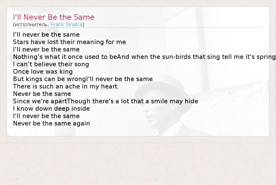 А как ты думаешь, о чем песня "I'll Never Be the Same" ?