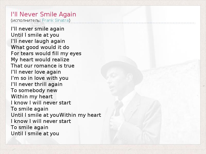 А как ты думаешь, о чем песня "I'll Never Smile Again" ?