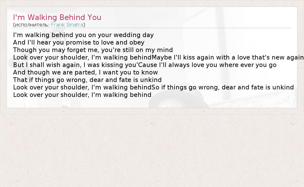 А как ты думаешь, о чем песня "I'm Walking Behind You" ?