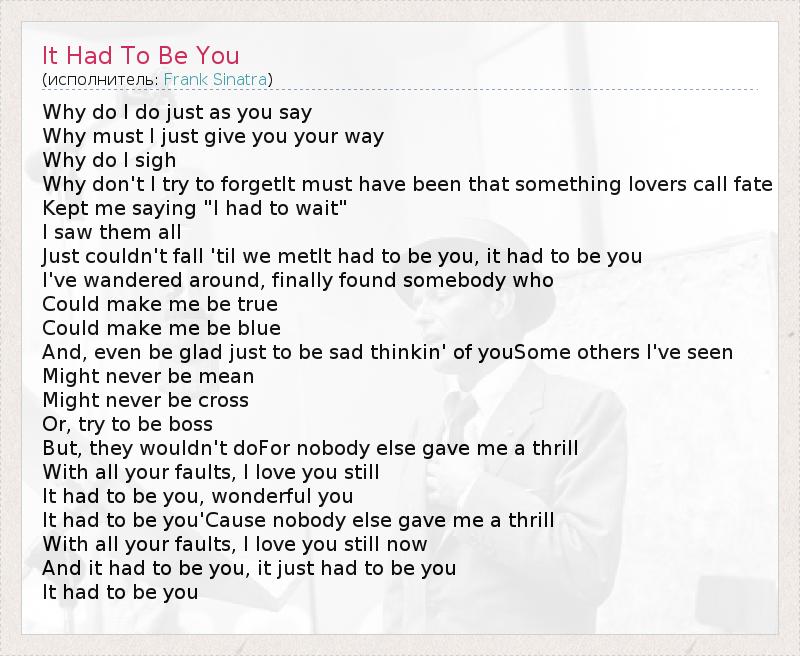А как ты думаешь, о чем песня "It Had To Be You" ?