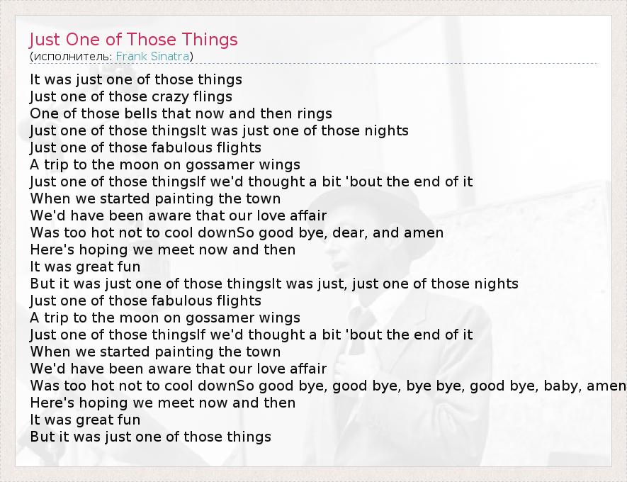 А как ты думаешь, о чем песня "Just One of Those Things" ?