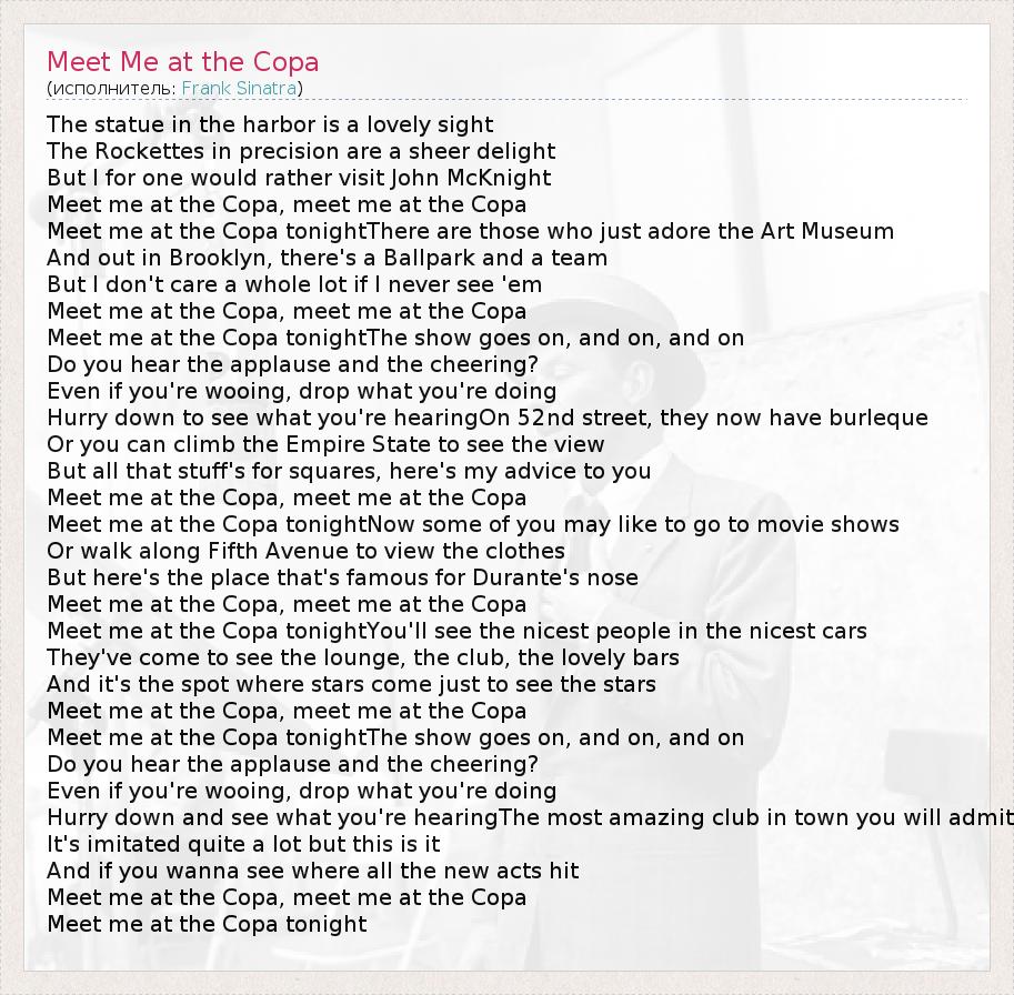 А как ты думаешь, о чем песня "Meet Me at the Copa" ?