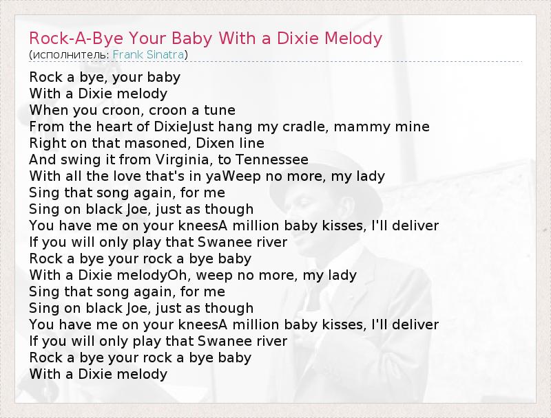 ГлавнаяИсполнителиFrank SinatraRock-A-Bye Your Baby With a Dixie Melody