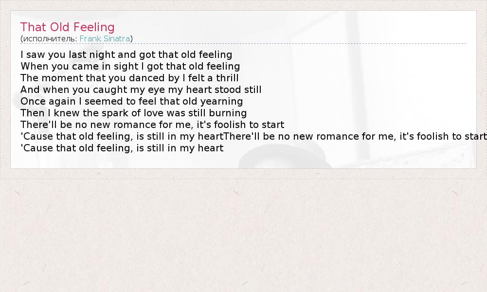 А как ты думаешь, о чем песня "That Old Feeling" ?