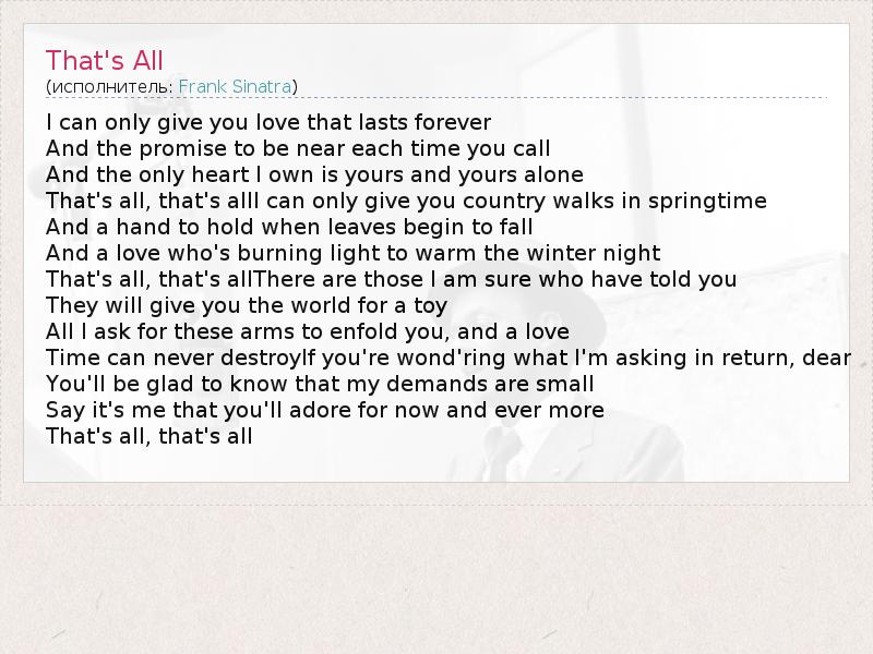 Time can never destroyIf you're wond'ring what I'm asking in return, dear