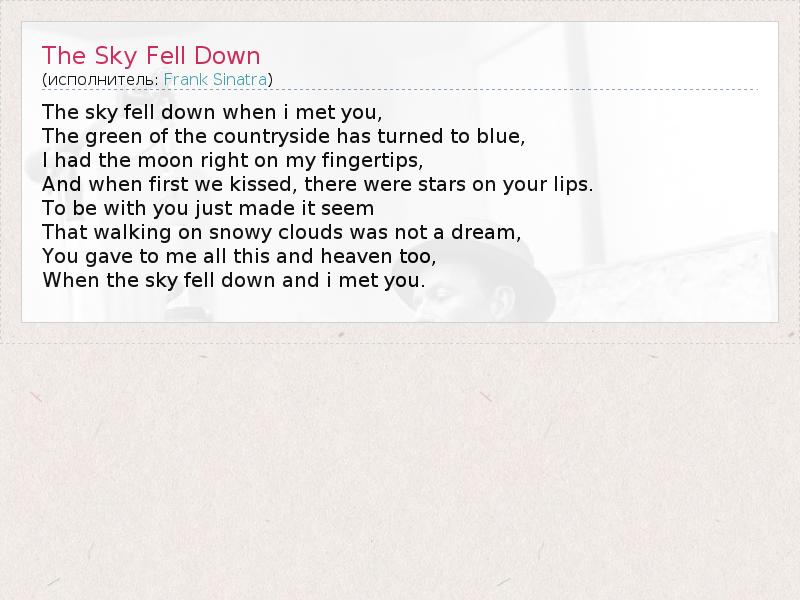 А как ты думаешь, о чем песня "The Sky Fell Down" ?