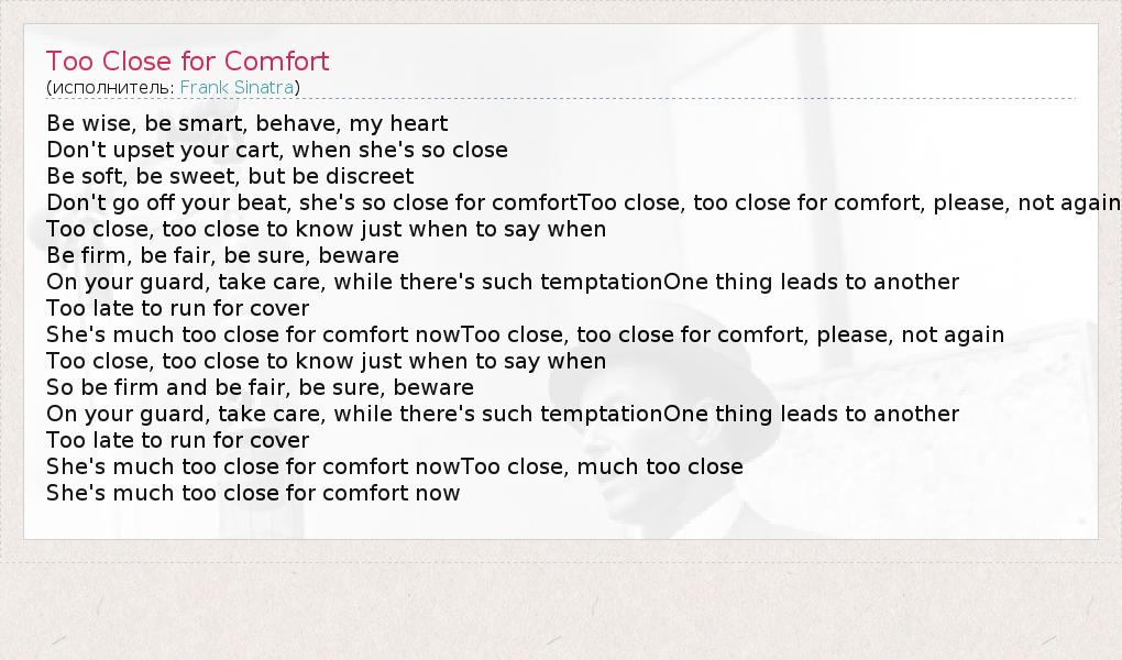 А как ты думаешь, о чем песня "Too Close for Comfort" ?