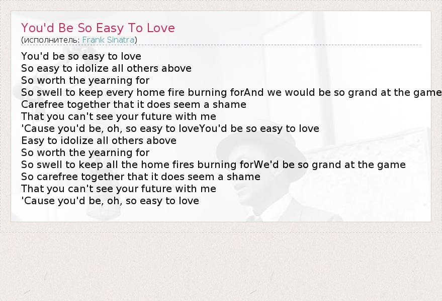 ГлавнаяИсполнителиFrank SinatraYou'd Be So Easy To Love