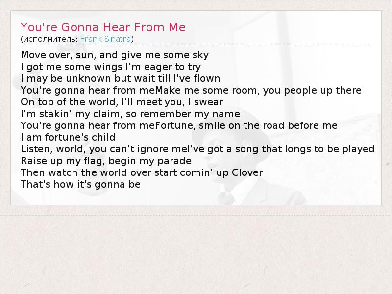 ГлавнаяИсполнителиFrank SinatraYou're Gonna Hear From Me