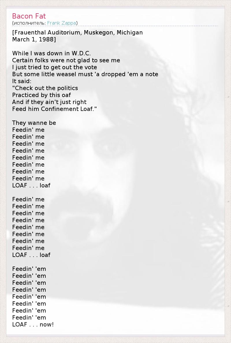 А как ты думаешь, о чем песня "Bacon Fat" ?