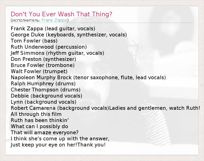 ГлавнаяИсполнителиFrank ZappaDon't You Ever Wash That Thing?