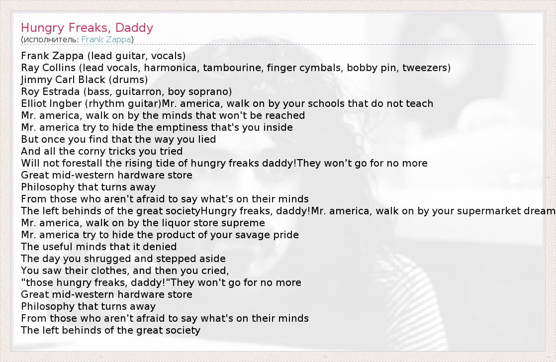А как ты думаешь, о чем песня "Hungry Freaks, Daddy" ?