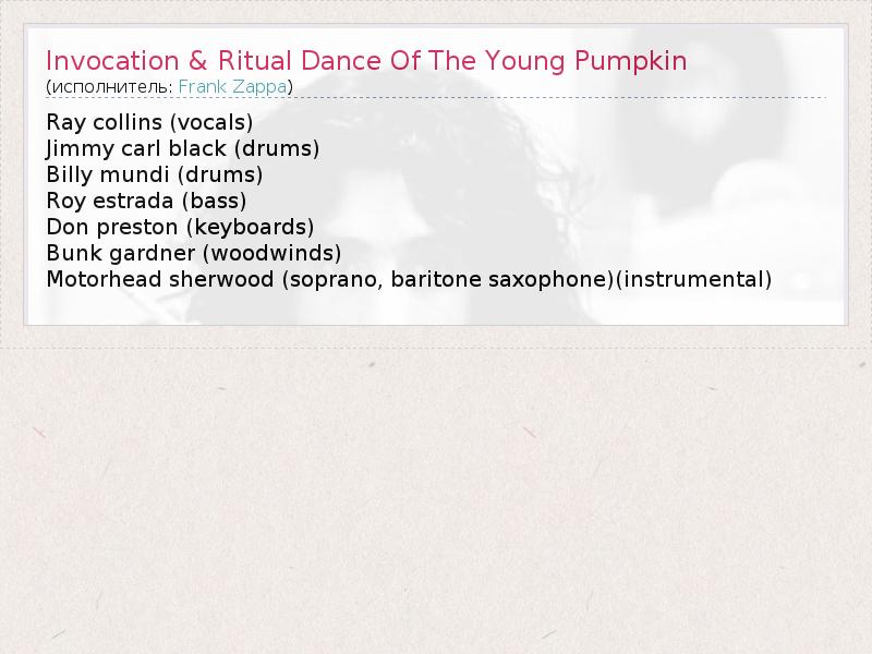 А как ты думаешь, о чем песня "Invocation & Ritual Dance Of The Young Pumpkin" ?