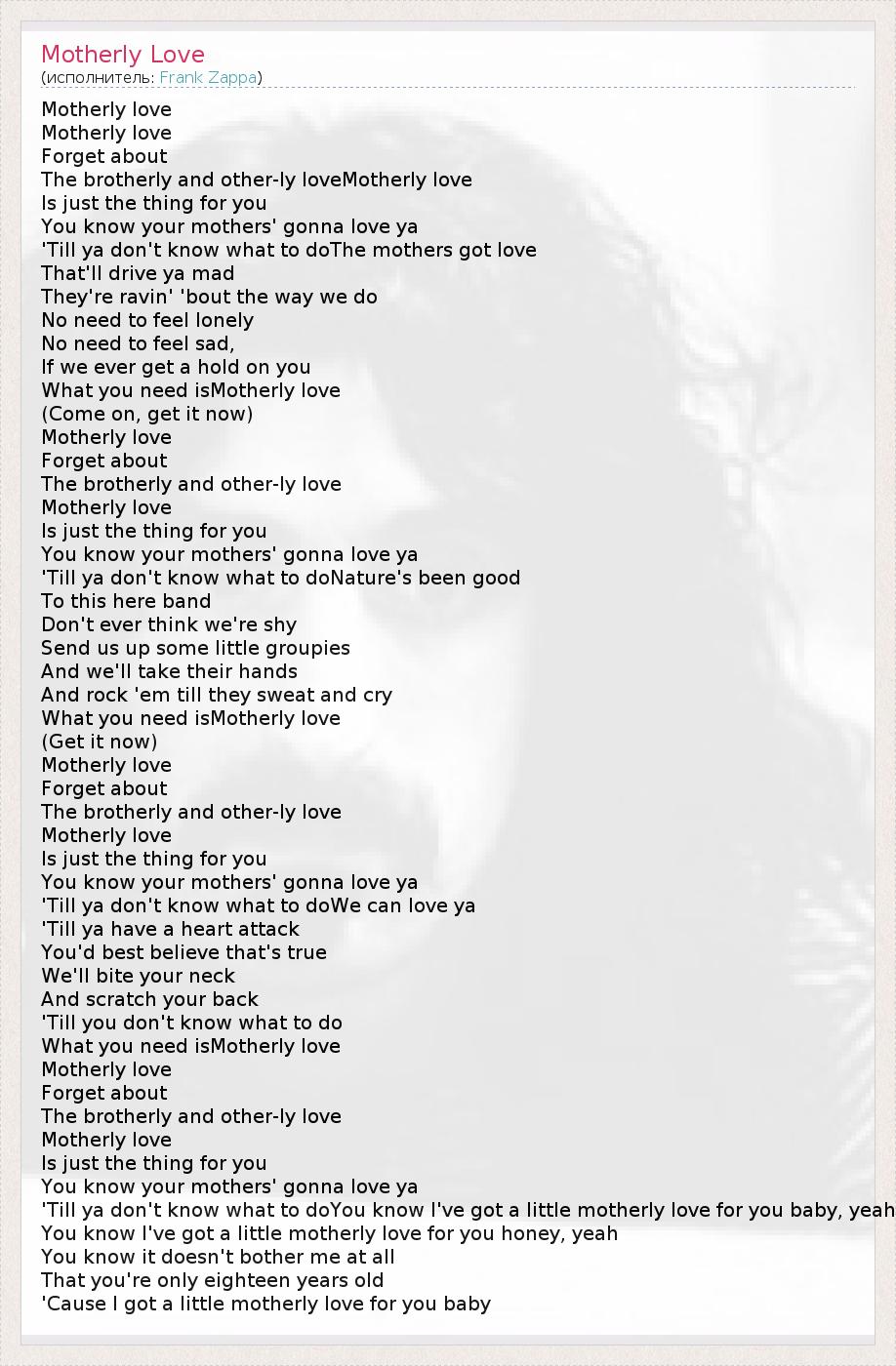 А как ты думаешь, о чем песня "Motherly Love" ?
