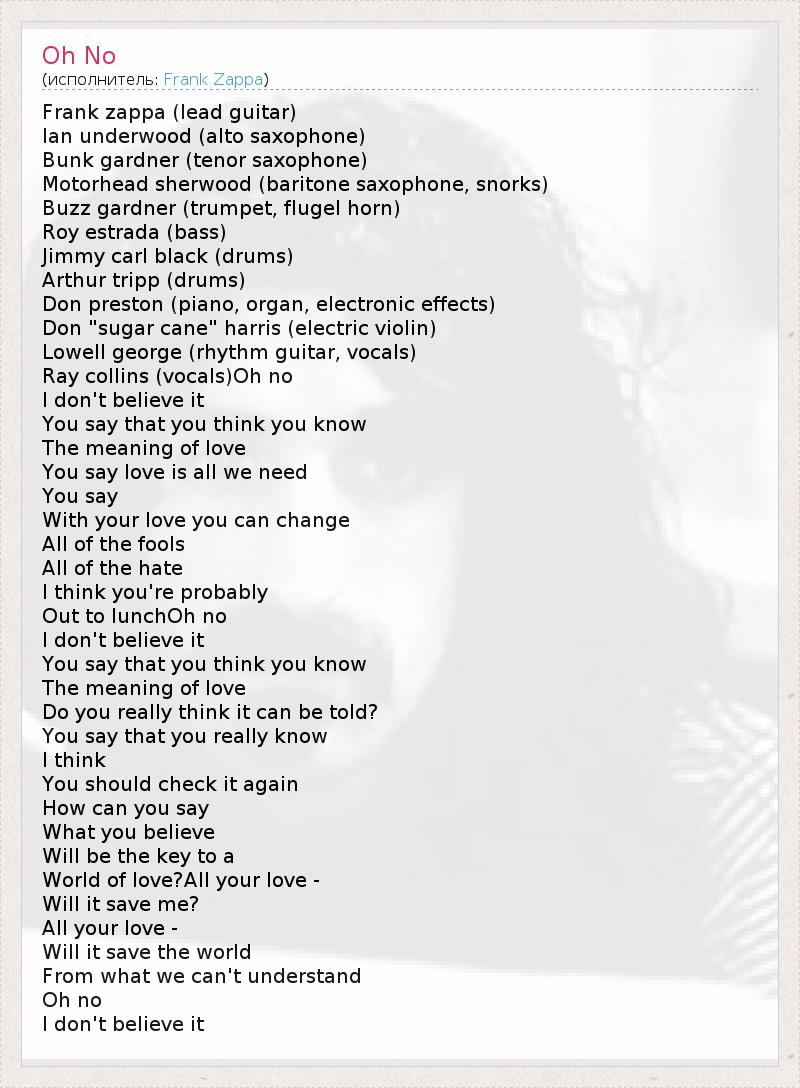 Это интересно:Фрэнк Винсент Заппа (англ. Frank Vincent Zappa, 21 декабря 1940 — 4 декабря 1993) — легендарный американский композитор, гитарист, певец, кинорежиссёр и сатирик. Был руководителем рок-группы The Mothers of Invention. Лауреат премии «Грэмми».За свою 33-летнюю музыкальную карьеру Заппа показал себя одним из самых плодовитых композиторов своей эпохи, выпустив более шестидесяти альбомов, почти все из... продолжение