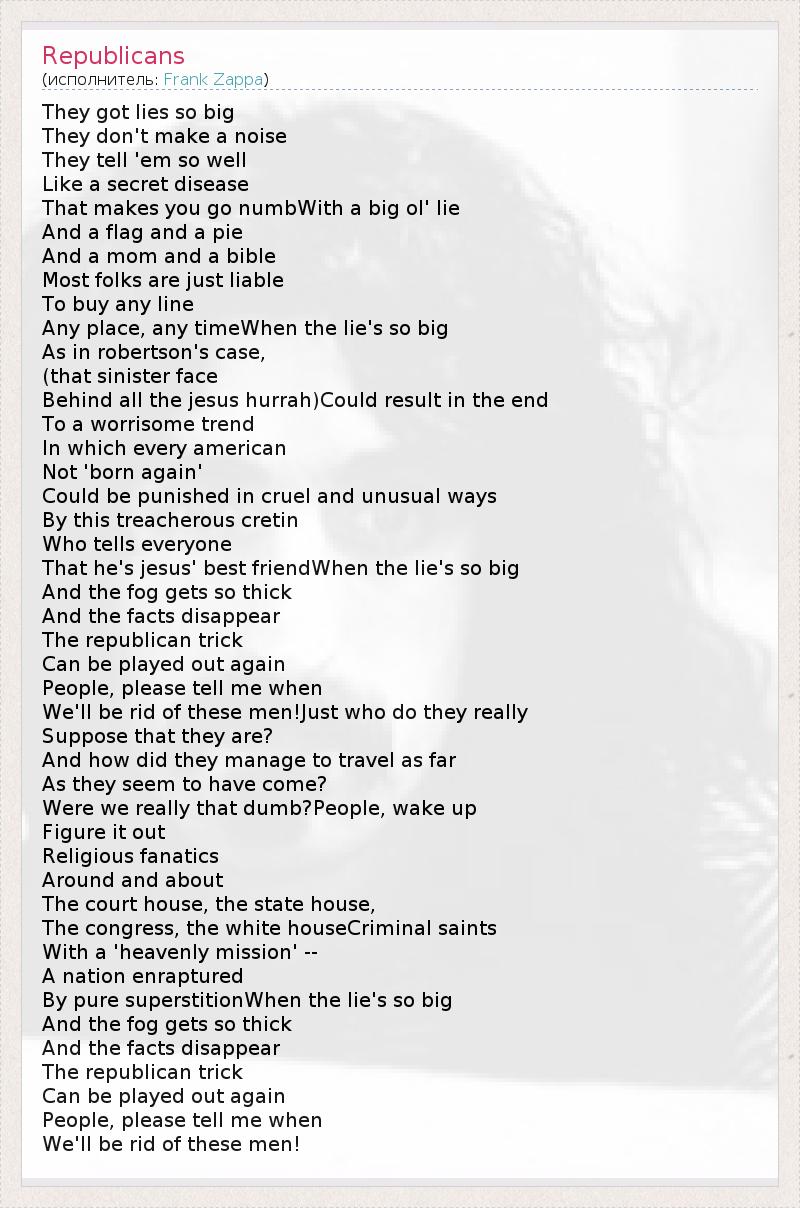 Это интересно:Фрэнк Винсент Заппа (англ. Frank Vincent Zappa, 21 декабря 1940 — 4 декабря 1993) — легендарный американский композитор, гитарист, певец, кинорежиссёр и сатирик. Был руководителем рок-группы The Mothers of Invention. Лауреат премии «Грэмми».За свою 33-летнюю музыкальную карьеру Заппа показал себя одним из самых плодовитых композиторов своей эпохи, выпустив более шестидесяти альбомов, почти все из... продолжение