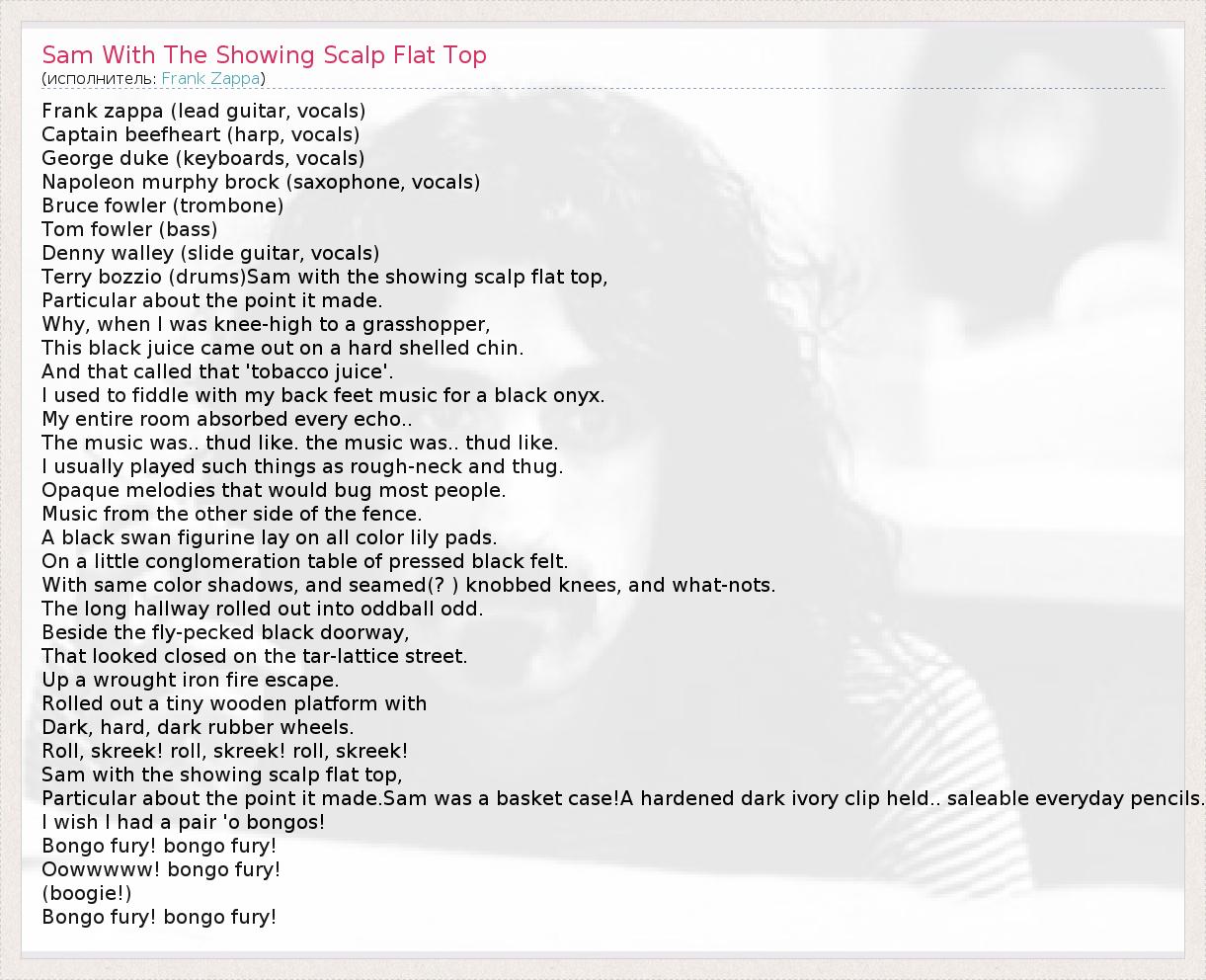 А как ты думаешь, о чем песня "Sam With The Showing Scalp Flat Top" ?