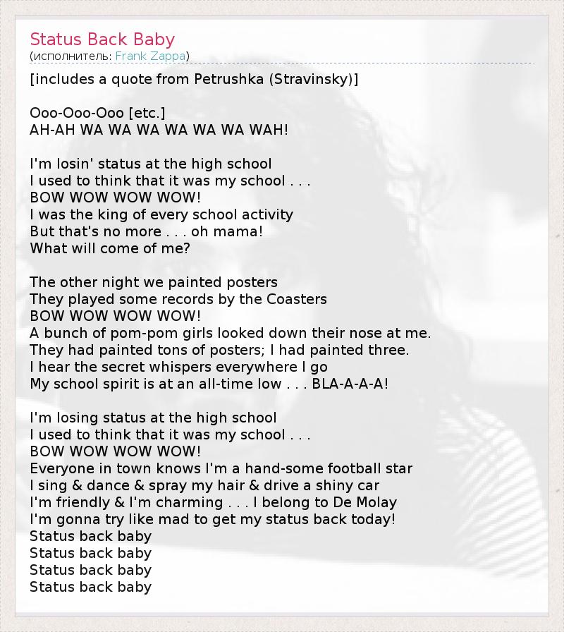 А как ты думаешь, о чем песня "Status Back Baby" ?