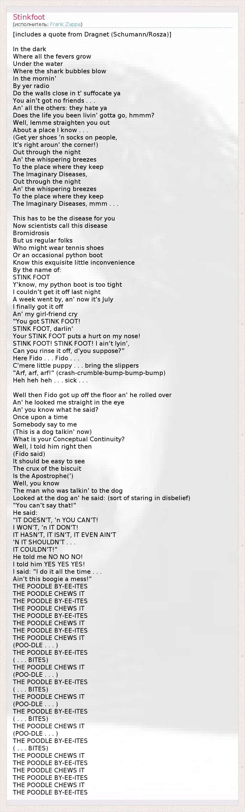 А как ты думаешь, о чем песня "Stinkfoot" ?