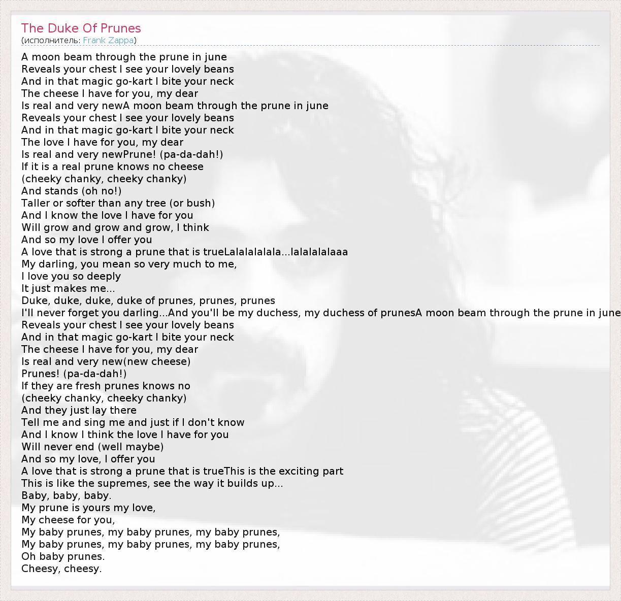 А как ты думаешь, о чем песня "The Duke Of Prunes" ?