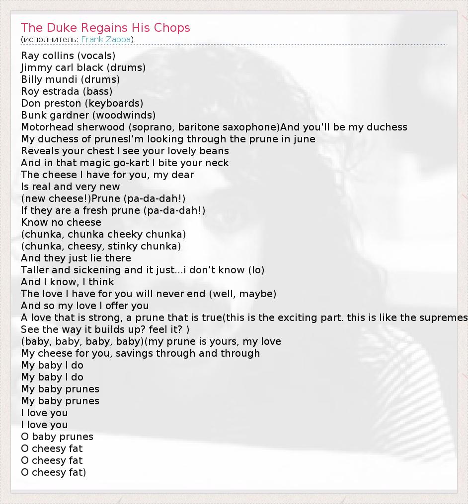 А как ты думаешь, о чем песня "The Duke Regains His Chops" ?