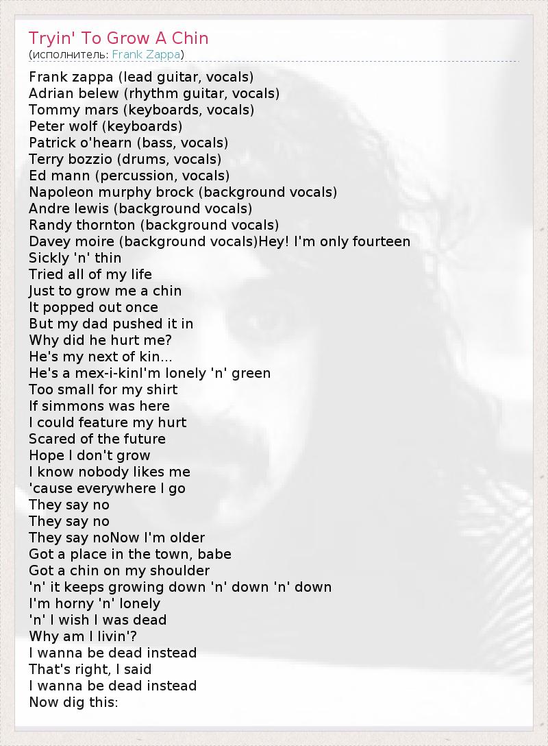 А как ты думаешь, о чем песня "Tryin' To Grow A Chin" ?