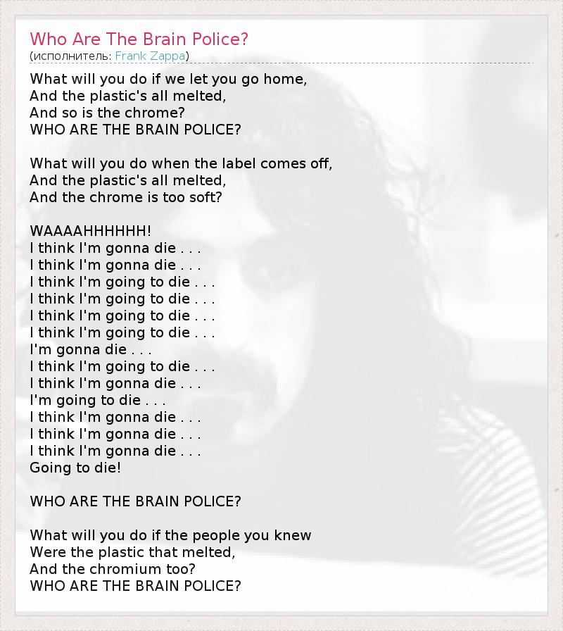А как ты думаешь, о чем песня "Who Are The Brain Police?" ?