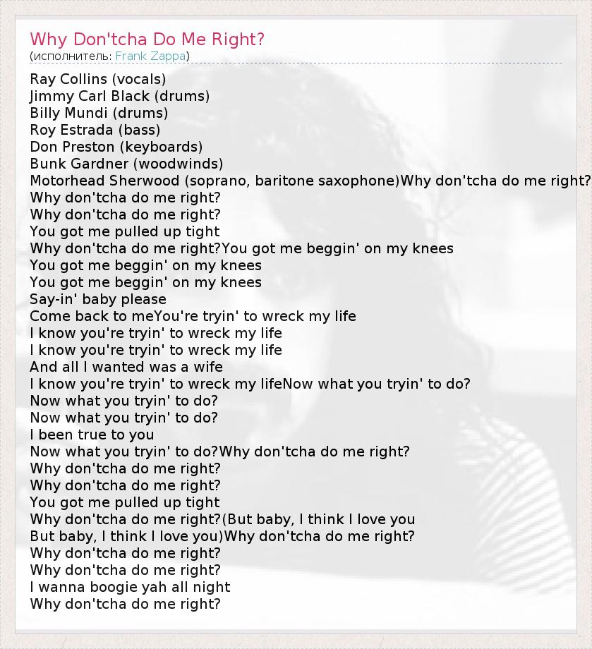 А как ты думаешь, о чем песня "Why Don'tcha Do Me Right?" ?