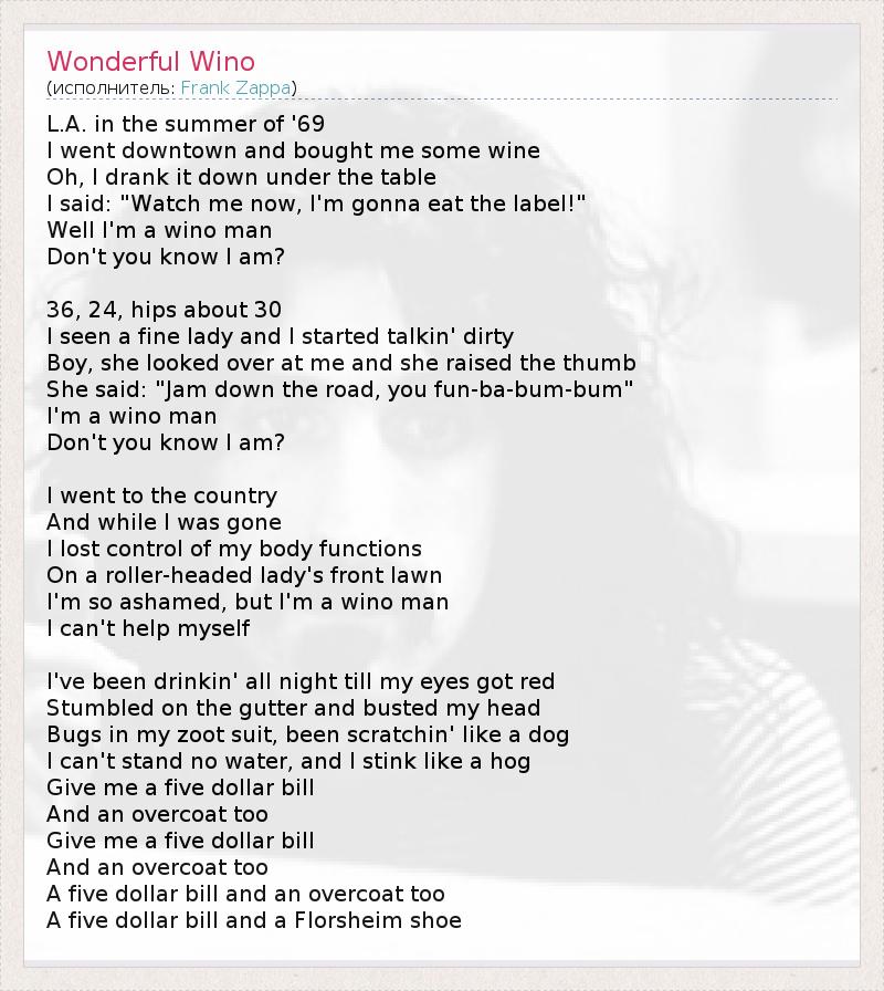 А как ты думаешь, о чем песня "Wonderful Wino" ?