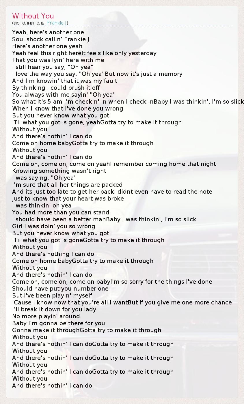 Come on, come on, come on babyI'm so sorry for the things I've done
