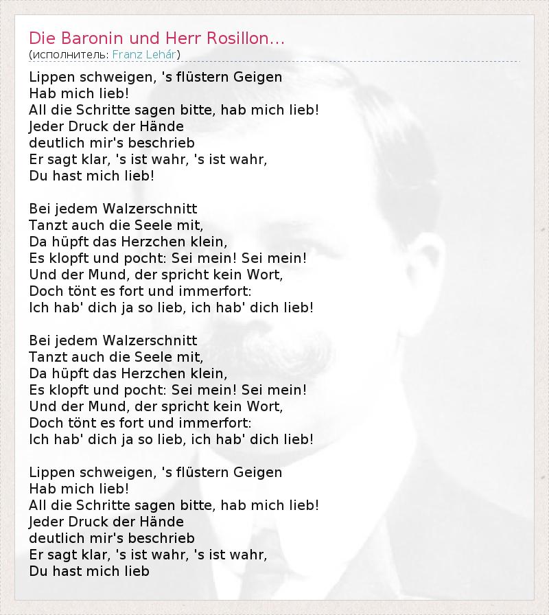 А как ты думаешь, о чем песня "Die Baronin und Herr Rosillon..." ?