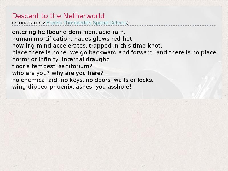 А как ты думаешь, о чем песня "Descent to the Netherworld" ?