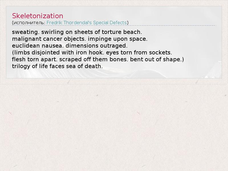 А как ты думаешь, о чем песня "Skeletonization" ?