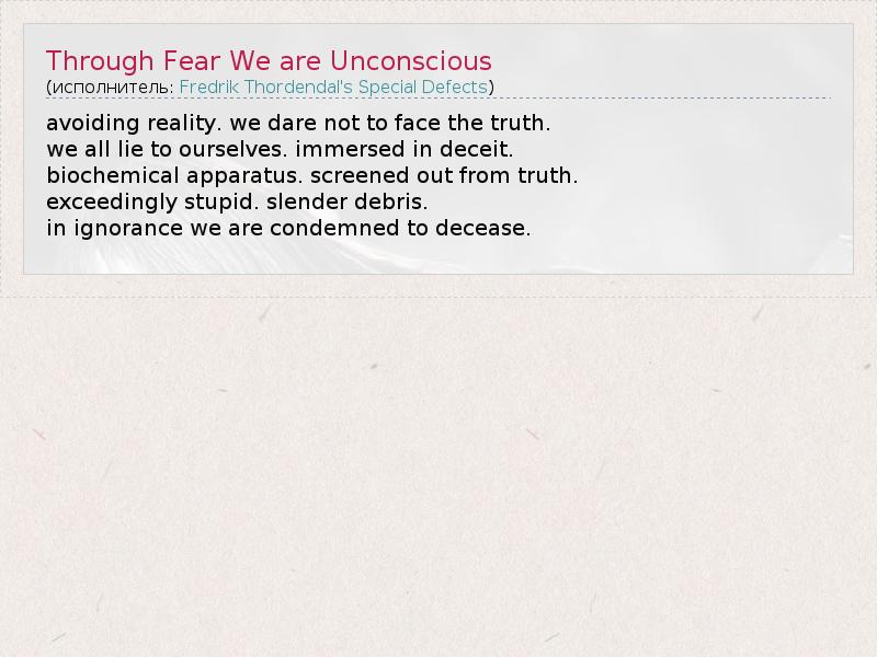 А как ты думаешь, о чем песня "Through Fear We are Unconscious" ?