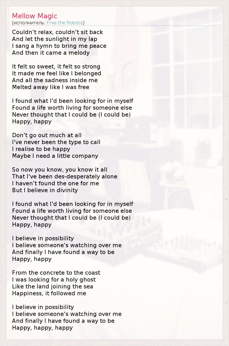 А как ты думаешь, о чем песня "Mellow Magic" ?