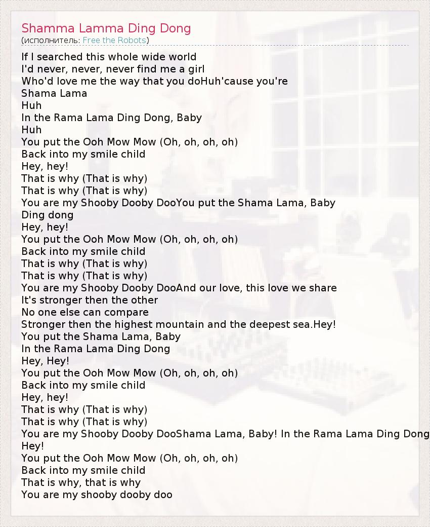 А как ты думаешь, о чем песня "Shamma Lamma Ding Dong" ?