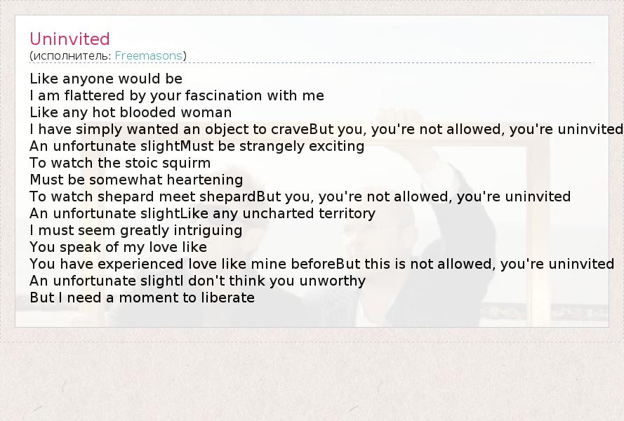 You have experienced love like mine beforeBut this is not allowed, you're uninvited