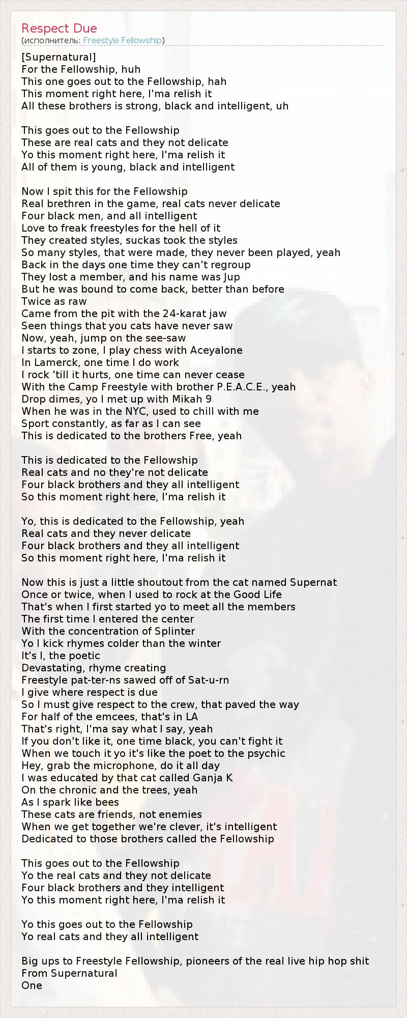 А как ты думаешь, о чем песня "Respect Due" ?