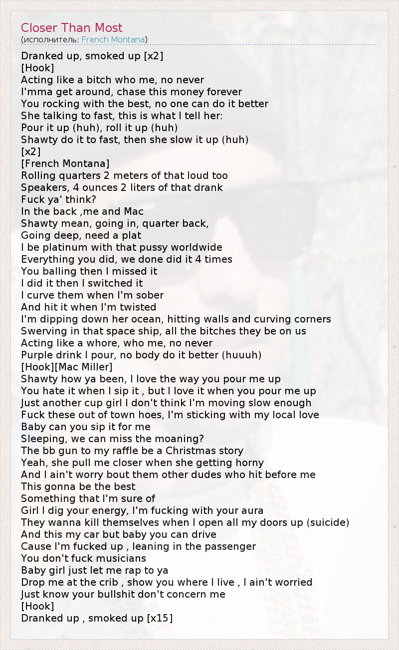 Это интересно:Karim Kharbouch (born November 9, 1984) better known by his stage name French Montana, is an American rapper born in Morocco.He is the founder and CEO of Cocaine City Records. In 2012, he signed a joint venture recording deal with Maybach Music Group and Bad Boy Records. Montana is known for his frequent collaborations with Max B, and more recently with Rick Ross along with his group Coke Boys, which consists of rappers Chinx Drugz, Cheeze and Flip.His debut album Excuse My French is scheduled to be released on May 21, 2013.Contents 1 Early life2 Music career2.1 2002–2011: Cocaine City Records2.2 2011–present: Bad Boy Records; Maybach Music Group; debut album... продолжение