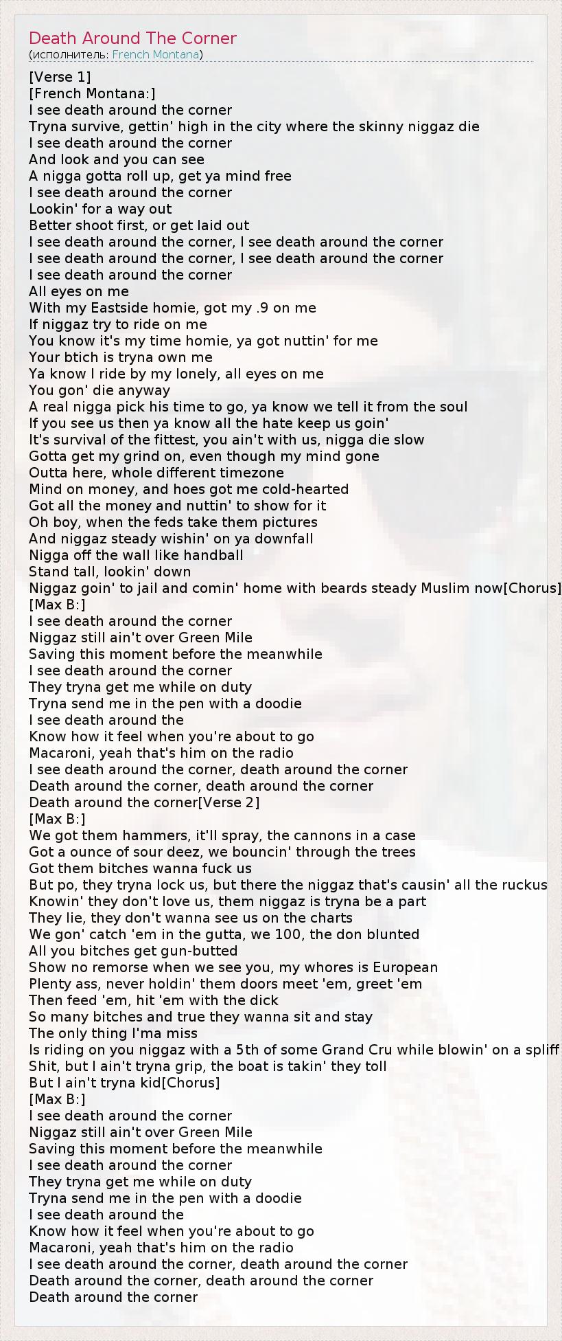 I see death around the corner, death around the corner