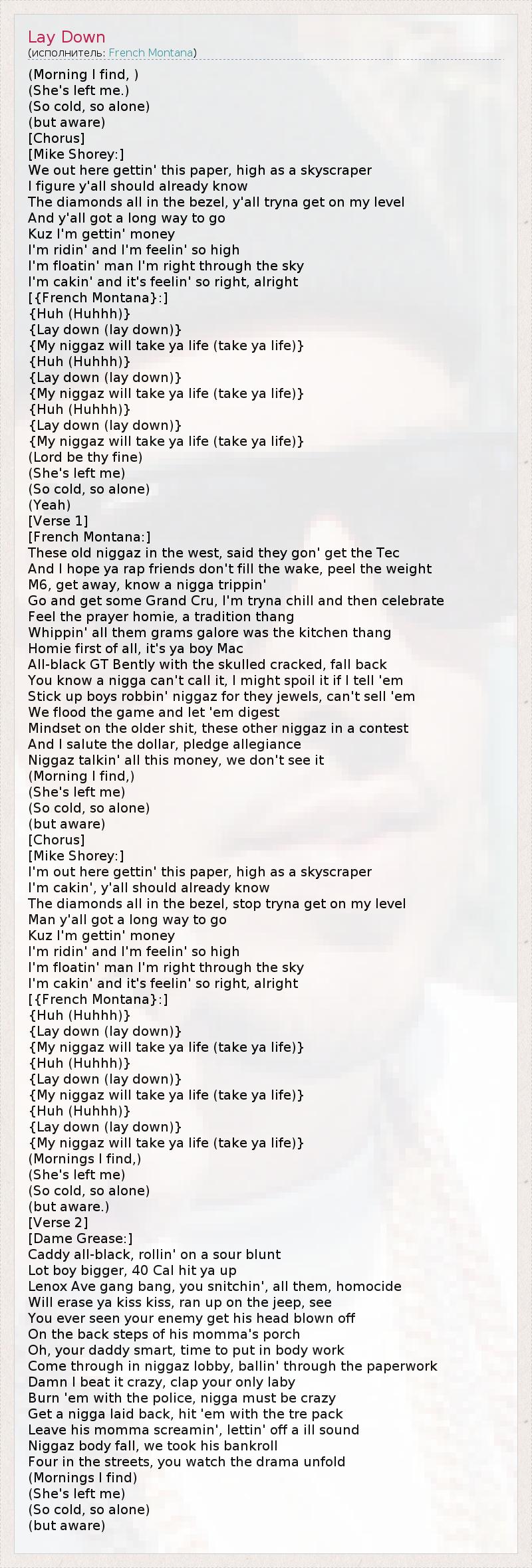 Это интересно:Karim Kharbouch (born November 9, 1984) better known by his stage name French Montana, is an American rapper born in Morocco.He is the founder and CEO of Cocaine City Records. In 2012, he signed a joint venture recording deal with Maybach Music Group and Bad Boy Records. Montana is known for his frequent collaborations with Max B, and more recently with Rick Ross along with his group Coke Boys, which consists of rappers Chinx Drugz, Cheeze and Flip.His debut album Excuse My French is scheduled to be released on May 21, 2013.Contents 1 Early life2 Music career2.1 2002–2011: Cocaine City Records2.2 2011–present: Bad Boy Records; Maybach Music Group; debut album... продолжение