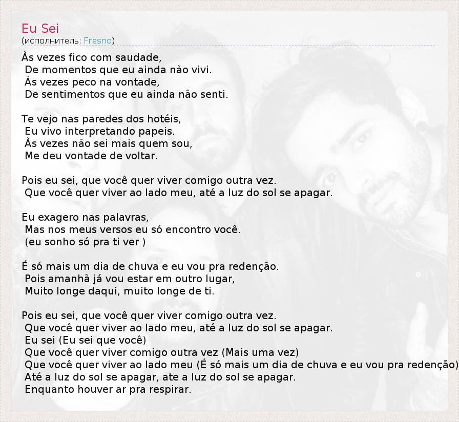 А как ты думаешь, о чем песня "Eu Sei" ?