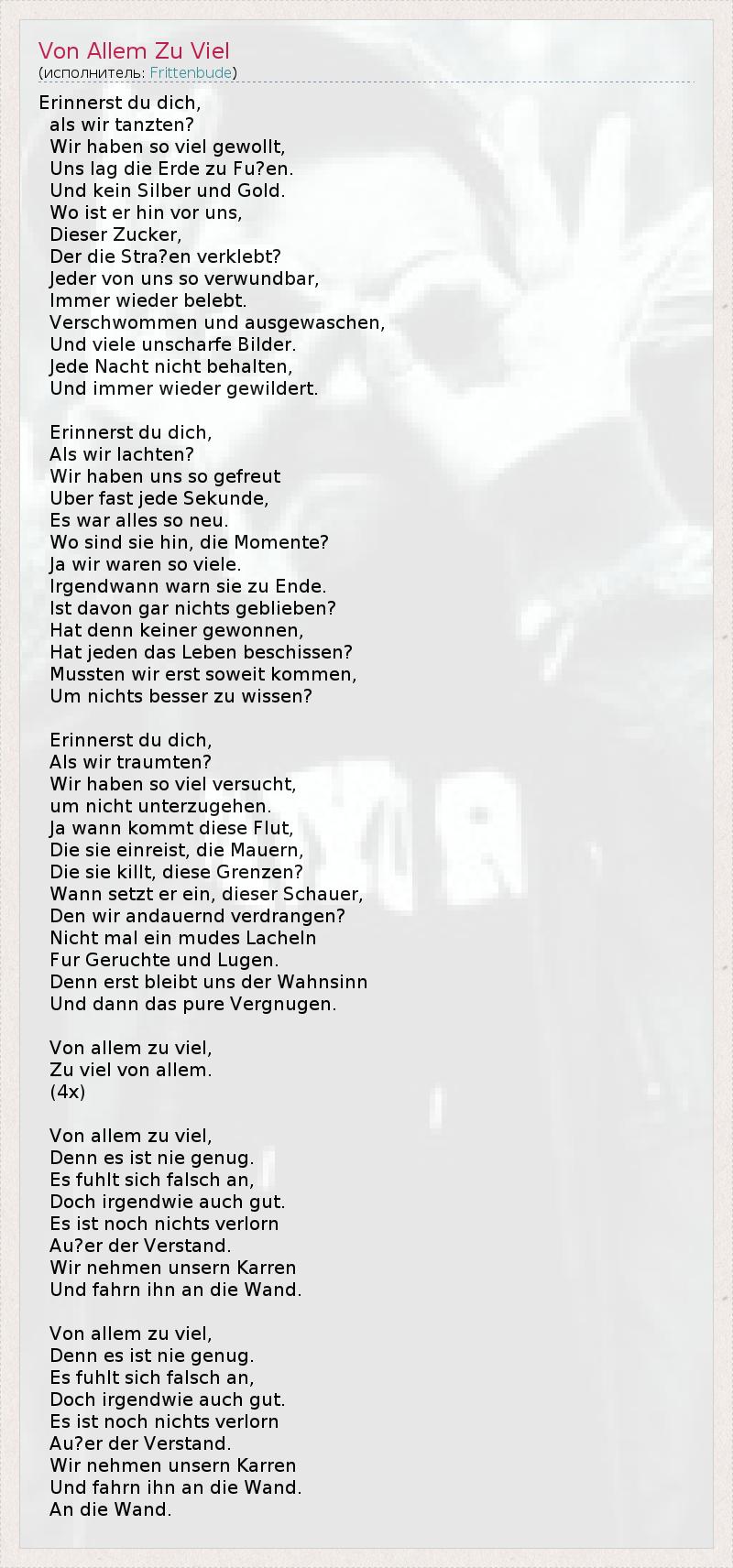А как ты думаешь, о чем песня "Von Allem Zu Viel" ?