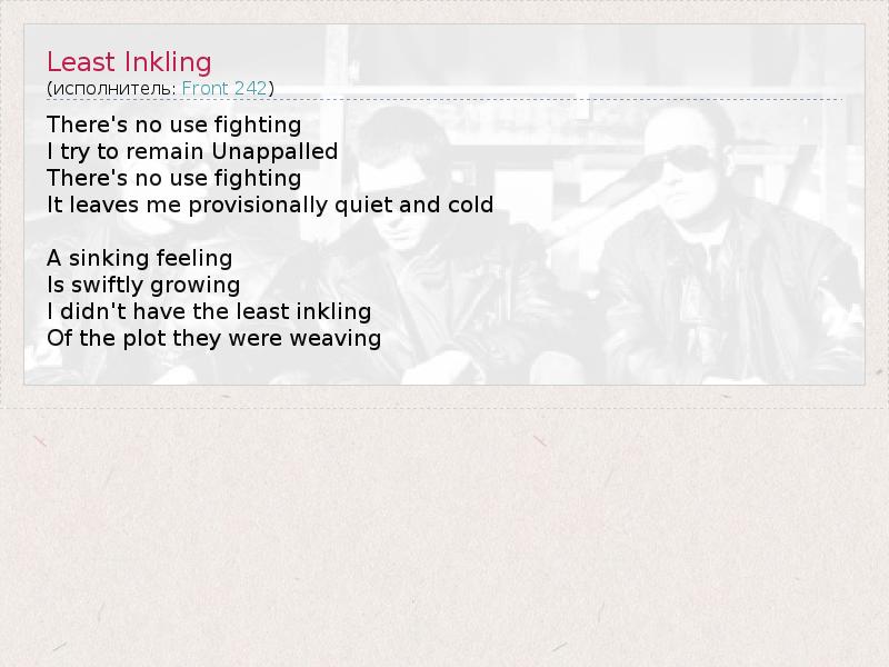 А как ты думаешь, о чем песня "Least Inkling" ?